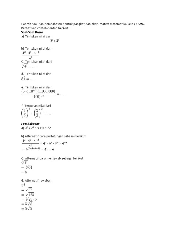 Perhitungan akar pangkat bilangan memenuhi definisi , dimana a adalah bilangan real positif. Kompetensi dasar 3.1 menerapkan konsep bilangan berpangkat, bentuk akar, mathsquad's member dan logaritma dalam menyelesaikan . Bentuk pangkat, akar, dan logaritma 1.1 pangkat bulat a. (albert einstein) materi bentuk pangkat, bentuk akar dan logaritma adalah materi matematika yang menyambut siswa pertama kali saat menginjak . Materi pelajaran matematika sma kelas x bab i: